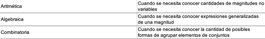 Con base en este razonamiento, se pueden asociar necesidades específicas a cada uno de los cuatro ejes de pensamiento matemático, a saber.